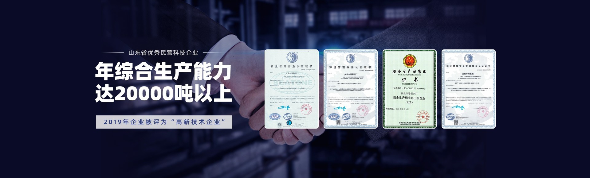 安丘市增塑劑廠始建于1984年,坐落在“全國(guó)重點(diǎn)鎮(zhèn)”安丘市景芝鎮(zhèn),山東省高新技術(shù)企業(yè),“山東制造”品牌認(rèn)定企業(yè)。主要從事油田化學(xué)品的研制、生產(chǎn)與銷售,是破乳劑、瀝青抑制劑等油田化學(xué)品專業(yè)生產(chǎn)廠家。公司先后與中國(guó)石油大學(xué)、山東理工大學(xué)和濱州學(xué)院合作,建立了“油田化學(xué)聯(lián)合研究所”、“水處理聯(lián)合研究所”、“長(zhǎng)期教學(xué)基地”和“大學(xué)生創(chuàng)新創(chuàng)業(yè)實(shí)踐基地”。公司已通過(guò)ISO9001質(zhì)量體系認(rèn)證、ISO14001環(huán)境管理體系認(rèn)證和ISO45001職業(yè)健康安全管理體系認(rèn)證,取得“安全生產(chǎn)標(biāo)準(zhǔn)化證書(shū)”。公司配套產(chǎn)品生產(chǎn)線10條,年綜合生產(chǎn)能力20000噸以上。